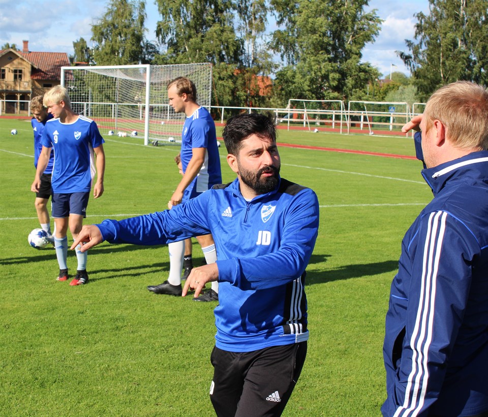 Trots två matcher där vi inte riktigt får till vårt spel på det sättet som vi vill och det blir kämpa matcher så står vi obesegrade i Div.3 och det är mer än ett okej resultat som nykomlingar. Efter kamrat och rivalmötet med IFK Skövde denna onsdagskväll i augusti som bjöd på kyla och grått väder, till skillnad från de andra matcherna spelat som var soliga och otroligt varma, står båda lagen på 11 poäng och har inte förlorat. Hjo ligger på en tredjeplats i serien efter 5 omgångar med samma poäng som ettan och tvåan. Första halvlek var lite böljande spel och bollen gick fram och tillbaka mellan lagen men inte något lag kom till riktiga lägen. Vi rullade boll lite för lite och slog den långa bollen för tidigt när vi hade chansen att hålla i bollen och passa och sen hitta läget som är bättre säger Johny David. Precis innan halvtidspausen när klockan hade slagit 45 minuter fick Skövde ett inkast men domaren lät spelet fortgå och Skövde kunde efter ett antal passningar komma in i straffområdet och där blev spelaren fälld och domaren blåste straff och stora protester från Hjos sida både mot att det skett på övertid och att Hjo hade en liknande straffsituation tidigare i halvleken som inte blev straff. Straffen resulterade i mål och att Skövde gick till pausvila med en ledning. I halvtidspausen pratade tränarna och vad som skall ändras i det egna spelat och starten på andra spelar vi bra och kvitterar ganska tidigt efter ett drömmål av Erik Johannesson. Vi har tar över spelet mer efter målet men efter en kvart i andra halvlek så blir Nils Brunér utvisad efter sitt andra gula kort i matchen, detta ändrar matchbilden såklart och vi flyttar ner en mittfältare som mittback. Med en man mindre får vi ändra sitt spelsätt och låta Skövde ha mer boll och detta präglar resterande tid av matchen men Hjospelarna visar sin kämpaglöd och sin vilja att sätta laget främst och kämpa hela matchen. Trots stort bollinnehav av Skövde speciellt efter utvisningen så kommer inte Skövde till så många farliga lägen, Filip Broberg får göra några räddningar och en i boll i stolpen. Med facit i hand efter matchen är Johny David nöjd med 1 poäng och tar nya tag mot matchen borta i Falköping på lördag.
