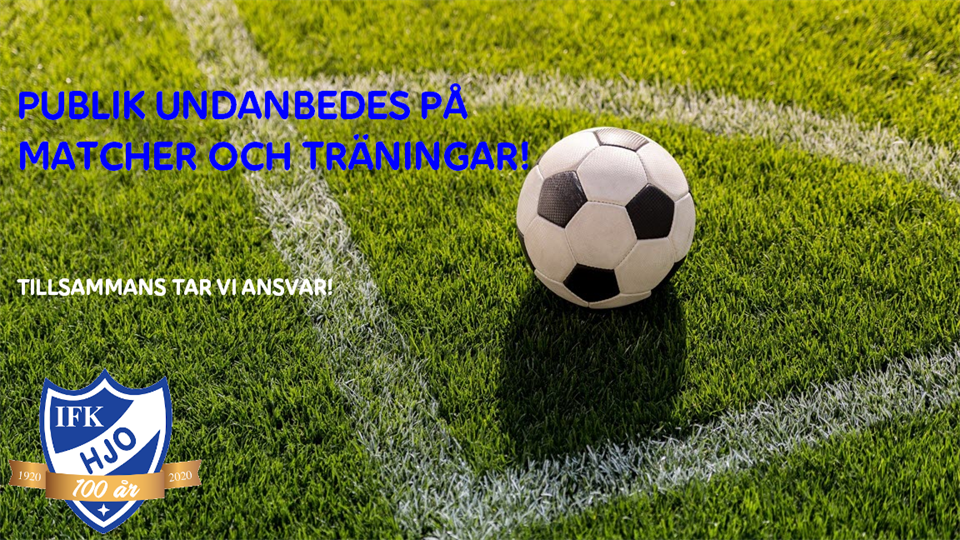 All publik, inklusive föräldrar och andra anhöriga, undanbes vid matcher och träningar. Enbart de som är nödvändiga för att matchen eller träningen ska kunna genomföras ska vara på plats. Det innefattar spelare, ledare och funktionärer. Ovanstående beslutade styrelsen idag efter uppdaterade riktlinjer från Svenska Fotbollsförbundet. Vi ber er alla att respektera detta! //Styrelsen IFK Hjo