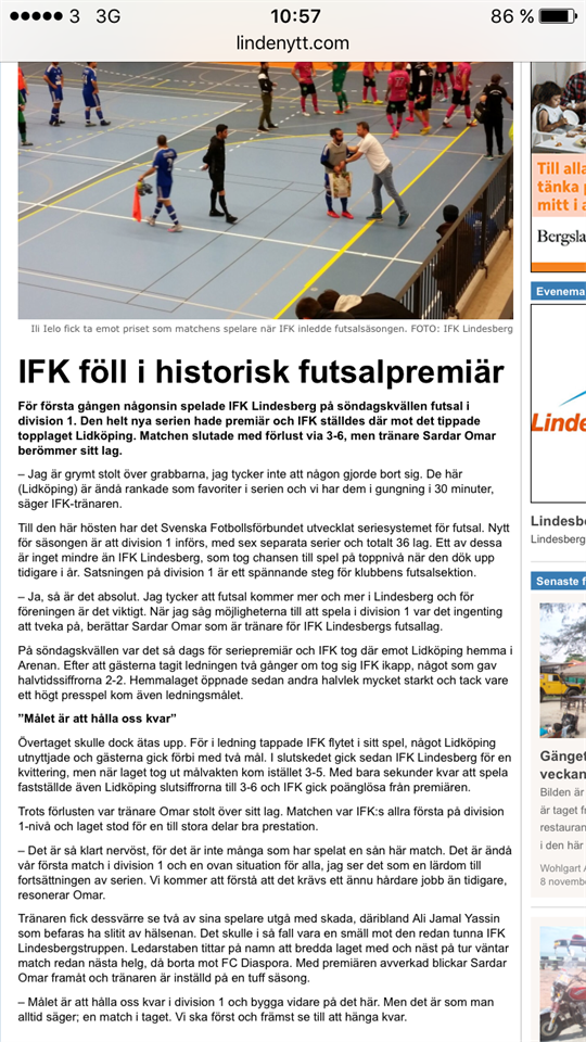 Första matchen nånsin i div 1 fick vi ge oss till slut och förlorade med 3-6 hemma i arenan mot dem topptippade fc Lidköping efter att vi lede med 3-2 med ca 10 min kvar av matchen. Men vi ger oss inte vi kommer ännu starkare till nästa match på lördag då vi gästar fc diaspora i Uddevalla. Futsal Herr 15 nov 2016 0kommentarer