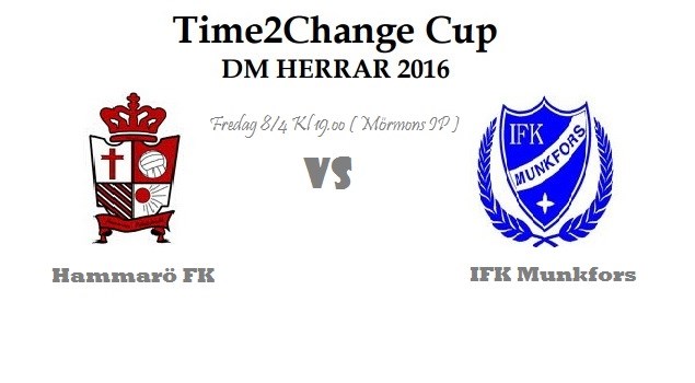 Hammarö FK är motståndet i herrarnas 1/16 final i årets Time2Change Cup ( DM Herrar 2016 ) Matchen kommer att spelas på Mörmons IP, där vi nog kommer kunna bevittna en tät och tuff drabbning dessa lag emellan. Motståndet Hammarö FK som förra säsongen stod för en riktigt bra prestation och knep andraplatsen i Div5 Östra. FBK Karlstad 2 blev seriesegrare och tog klivet upp i Värmlandsfyran medans Hammarö fick försöka kvala sig uppåt i seriesystemet. Ett kval som genomfördes på ett bra sätt men som inte räckte hela vägen då Forshaga IF som alla kanske minns hängde kvar i fyran efter att ha kvalat sig kvar. HFK blev grupptvåa i samma kval som Forshaga vann. ( Även Grums deltog där ) Hammarö Fotbolls Klubb har 2016 spelat följande träningsmatcher ; IFK Åmål - Hammarö FK 2-0, Hammarö FK - Sommaro IF 2-1, Carlstad United U-19 - Hammarö FK 3-2, och Jula BK - Hammarö FK 4-3 . Förutsättningar vid seger Segraren i mötet går vidare till 1/8 final där man kommer att ställas mot redan klara Ulvsby IF som även kommer stå som hemmalag. Så fredagens möte är en viktig match för båda klubbarna, för det lag som vinner här och som sedan eventuellt slår Ulvsby IF får sedan i kvartsfinalen möta något av tre följande lag , Västanviks AIF, IFK Sunne eller Carlstad United där nyss nämnda blir bortalag ! 1/16 - final Time2Change Cup ( Fredag 8/4, Avspark 19.00 Mörmons IP ) Hammarö FK - IFK Munkfors Domare i matchen är Mattias Larsson och han assisteras av Daniel Johansson & Andreas Sundblad ( Samtliga Kristinehamn )