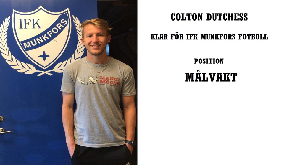 Colton Dutchess klar för IFK Munkfors Fotboll !! Och verkar stormtrivas redan efter en dag! - Munkfors är ett vackert område och alla har varit väldigt snälla och hjälpsamma i samband med flytten till Munkfors säger amerikanen som närmast kommer från NK Uljanik. Vidare fortsätter målvakten på frågan vad han kommer tillföra sitt nya lag - Mina mål är att göra min del för att hjälpa laget att bli framgångsrikt och prestera under hela säsongen säger Colton! Han beskriver sig själv som en målvakt som är pålitlig när det gäller som mest och lägger energi på mycket små detaljer som kanske inte alltid märks. Colton har Sanford Sabres som moderklubb och IFK Munkfors är givetvis mycket glada över att ha kommit överens med Colton då klubben haft problem just på den biten. Men nu är alltså den biten löst. - Vi oerhört tacksamma för att få rättsida på detta, även det faktum att det gick att lösa relativt fort påpekar Fotbollssektions arbetsgrupp i ett pressmeddelande på fredagskvällen. IFK Munkfors hälsar Colton Dutchess varmt välkommen till föreningen och orten Munkfors och hoppas han ska komma att trivas i klubben säger man avslutningsvis.