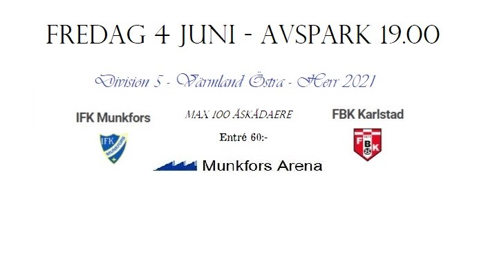 Äntligen börjar saker och ting sakta återgå till det normala, så även för "fotbolls-värmland"och dess lag under Värmlands Fotbollsförbund, för det är nämligen så att Division 5 Östra, smygstartar ikväll, torsdag med mötet Karlskoga SK - Deje IK. VFF har tillsammans med samtliga klubbar berörda jobbat hårt för att få till spelscheman som inte "spretar" iväg alltför mycket och det har fallit väl ut. Detta betyder att Munkfors inleder seriespelet 2021 nu på fredag då man gästas av FBK Karlstad 2. Avspark sker 19.00 och konstgräsplanen vid Munkfors Arena är spelplatsen. Många vändor har det blivit och frustrerande har det varit då man inte kunnat förbereda sig som brukligt. Men det är lika för alla lag och det som verkligen betyder är att få komma igång igen. Först ut , alltså FBK 2 och med en gameplan att följa hälsar vi gästande lag FBK Karlstad, domare, funktionärer samt publik hjärtligt välkomna till Munkfors Arena nu på fredag. [ Max 100 åskådare är gällande ] Entrë 60:- Avslutningsvis . . . . . . lite statistik bara Sett till dom fem senaste mötena mellan dessa lag så ger det Karlstadslaget ett knappt övertag med tre vinster mot IFK Munkfors två segrar. Såhär slutade dessa enligt everysport 8 september 2017 - FBK Karlstad II - Munkfors 3 - 0 2 juni 2017 - Munkfors - FBK Karlstad II 0 - 3 27 augusti 2016 - Munkfors - FBK Karlstad II 2 - 0 9 maj 2016 - FBK Karlstad II - Munkfors 4 - 3 22 augusti 2014 - FBK Karlstad II - Munkfors 0 - 3 Väl mött vid Munkfors Arena