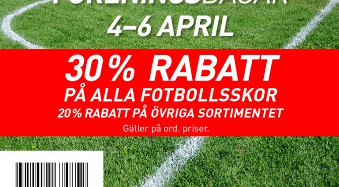 Tillsammans med Intersport bjuder vi in dig till föreningsdagar 4-6 april på Intersport. Få 30% rabatt på alla fotbollsskor och 20% rabatt på övriga sortimentet till ord.pris. Ett perfekt tillfälle att köpa skor, kläder och utrustning till specialpris! Visa upp detta inlägg i kassan för att få rabatten. U15 4 apr 2017 0kommentarer