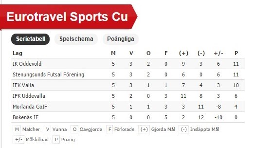 Vi var med minimala förberedelser lottade i grupp-c i årets Futsal-DM mot starkt motstånd och med ett antal återbud så visste vi inte alls var vi stod formmässigt jämfört med dagens motståndare. Vi hade iaf allt att vinna och inget att förlora. Vi hade följande killar till spel: 1 William Mendoza (mv) 4 Nicklas Rutgersson © 5 Hampus Siggelin 7 Oscar Thonell 9 Sebastian Nyåker 10 Linus Hallin 11 Victor Jarlesjö 13 Andreas Berntsson Första matchen var mot Bokenäs och om vi skulle ha någon chans att gå vidare så var det bara seger som gällde. Bokenäs försökte försvara sig och hoppas på ett slumpmål. Vi hade ett bra läge där Jarlesjö så när hittade Hallin efter drygt tre minuter sen var det ganska låst spel och klockan tickade väldigt snabbt fram till minut tio där Uncel drog en i ribban. Då kontrade Bokenäs med precis det där försöket till slumpmål, ett långskott i översidan ribban, William hade dock koll på den påstod han. :) Vi får sen till slut in ett segermål och det är Hajen som gör det med en bra placerad vänsterdojja med dryga minuten kvar. Segern 1-0 knapp men klar. Andra matchen gick mot Oddevold och vi skapade matchens första farlighet när Sebbe var framme med ett bra skott som dock täcktes oturligt för oss och Oddevold kunde kontra in 0-1. Vi reser oss dock och kan kvittera genom Hallin efter en snabb omställning. Sedan byttes det chanser resten av matchen utan att något lag hittar rätt igen, 1-1 alltså. Tredje matchen mot Morlanda var vår från start till mål. Vi hade läge nästan direkt genom ett fint inspel till Jarlesjö, vårt ledningsmål kom lite senare efter en kanon av Uncel i krysset, ruggigt fint mål. Sen var Jarlsjö nära två gånger till och även Orre Thonell hade ett bra läge. Vi lirade verkligen bra och skapade säkert tio målchanser, Morlanda hade inget att komma med och vi kan sen punktera matchen med ett mål av Jarlesjö. 2-0 seger och hur stabilt som helst, kunde blivit mycket större siffror. Sen var det dags för IFK Uddevalla och vi hade ett par ”halvlägen” i början bla ett av Uncel. Hampus lira sen fram Hallin men avslutet precis utanför. Sen gör vi 1-0 när Orre gör matchens prestation, tar emot felvänd, vänder förbi sin försvarare och sen med honom hängande på sig en grym vänster i krysset! Inte långt efter så missar Uddevalla ett uppspel som Hallin snappar upp och blir helt fri, 2-0 är ett faktum. IFK U hittar sen igenom med en bra kombination och kan reducera till 1-2. Vi gör sen 3-1 när Uncel är bra framme och sen hittar vi fram till Hallin som gör sitt andra mål. Nu såg det minst sagt bra ut men vi drar dock på oss vår fjärde frispark med runt två min kvar och IFK U kan skicka in reducering via en långstraff. Kvitteringen var dock aldrig riktigt nära utan vi vinner 3-2 och nu hade vi tämligen överraskande spelat in 10 poäng och en kvartsfinal var väldigt nära. Sista matchen gick mot Stenungsunds Futsalförening som vi ju lottas emot nästan jämnt. Vi skapar ett jätteläge när Hallin lirar fram Jarlesjö men skottet i stolpen. Den hade vi behövt. Sen är det troligen frispark för oss men domaren blundar och StFF kan istället göra 1-0. Resten av matchen var klart sevärd. Vi jagade kvittering och hade mest av bollen, skapade ett par fina lägen som dock skickligt räddades av Vallabekantingen Josip Brizic i StFF’s mål. StFF hade lägen de också och till slut marginalerna på sin sida och vi torska mycket knappt med 0-1, oavgjort hade räckt för oss. Nu hängde vår kvartsfinalplats på om IFK Uddevalla kunde ta en poäng av IK Oddevold i sista matchen. IFK Uddevalla gjorde dock en ganska pinsam insats och vilade tom spelare så Oddevold kunde tämligen gratis inkassera tre poäng och vi var utslagna. En VÄLDIGT bra insats av oss dock så vi får trots besvikelsen att vi med starka 10 poäng missade kvartsfinalen vara väldigt nöjda. Med tanke på omständigheterna MVG i betyg, alla stod för Mycket Väl Godkända insatser. /Slash