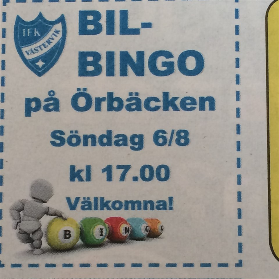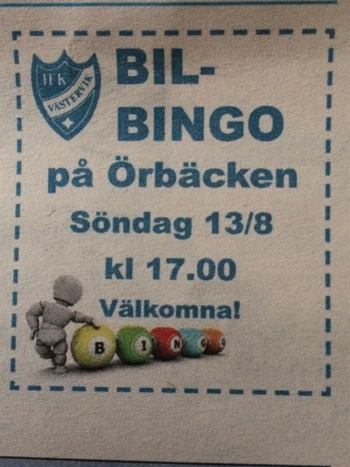 • BILBINGO IKVÄLL SÖNDAG 13/8 KL 17.00!