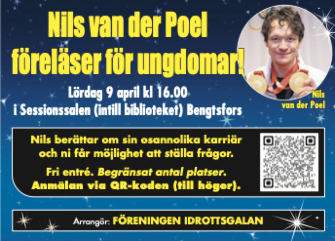 Lördag 9/4 kommer Nils van der Poel göra en föreläsning för ungdomar Föreläsningen kommer vara kl 16.00 i Bengtsfors och det är fri entre Anmälningsfristen är idag, torsdag 7/4, men det finns platser kvar. Skulle det vara så att man inte hinner skicka in sin anmälan under dagen så hör av er så kanske det går att lösa ändå. Anmälan på denna länk eller använd QR koden i bilden ovan Nb! Även om föreläsningen riktar sig till ungdomar så är det givetvis så att de vuxna som följer med barnen kan anmäla sig Ungdomssektion 7 apr 2022 0kommentarer