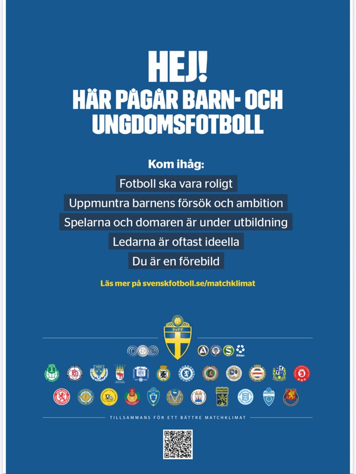 Nu är det dags för årets första MATCHKLIMATHELG. Bohuslän-Dalslands Fotbollförbund uppmanar alla föreningar att göra gemensam sak med SvFF och övriga distrikt, genom att särskilt dessa datum uppmärksamma det viktiga i Trygg fotboll och ett positivt matchklimat Vårens tema för matchklimathelgen är: Vårdat språkbruk på och vid sidan om alla fotbollsplaner. Länk för att läsa mer finns under länkar här på Laget. https://bohuslan-dalsland.svenskfotboll.se/nyheter/2025/matchklimathelg-10-11-maj/ Med Vänlig Hälsning Ungdomssektionen Ungdomssektion 7 maj 0kommentarer