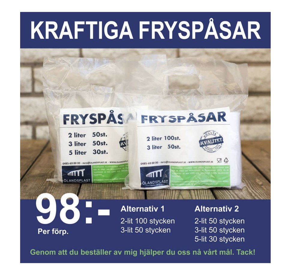 Hej, Nu är hösten här och vad är då perfekt att sälja om inte fryspåsar. Passar bra inför förvaring av svamp, bär, bakverk och kommande julbak! Tyvärr har beställningen varit försenad och den kommer nu på fredag. Varje spelare ska sälja 5 förpackningar var för 98:- st Ca 50% av försäljningen kommer gå direkt till laget som de kan använda tex till att åka på cup eller göra något annat roligt för. Påsarna hämtas hos Noah på Klövervägen 5H på fredag mellan kl 17-19 och även söndag kl 17-19. På bilden är det alternativ 2 som vi ska sälja. Ni har 3 veckor på er att sälja. Swish sker till 073-1552442 senast den 18/10. Märk swishen med ditt barns namn. Trevlig kväll! P-14 25 sep 2024