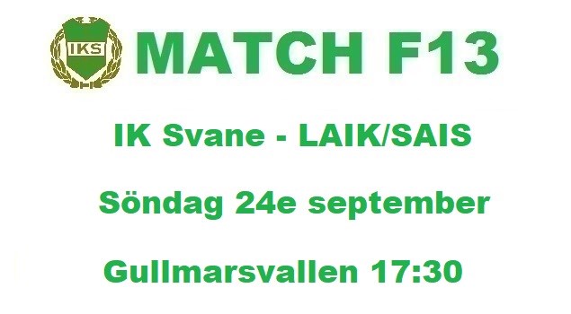 Hej! På söndag spelar tjejerna borta mot LAIK/SAIS. Matchen kickar igång 17:30 på Gullmarsvallen. Detta är tjejernas sista match i serien, kom gärna och heja :) IK Svane 22 sep 2017 0kommentarer