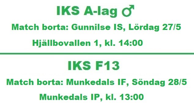Denna helgens matcher spelas båda på bortaplan. Först ut är herrarna i A-laget som ska spela borta mot Gunnilse imorgon lördag. Matchstart är kl.14:00 på Hjällbovallen 1. Nästa match spelar tjejerna i vårt F13 lag borta mot Munkedal på söndag. Matchstart är kl.13:00 På Munkedals IP. Varmt välkomna och trevlig helg, kom ihåg att fira mamma på söndag! IK Svane 26 maj 2017 0kommentarer