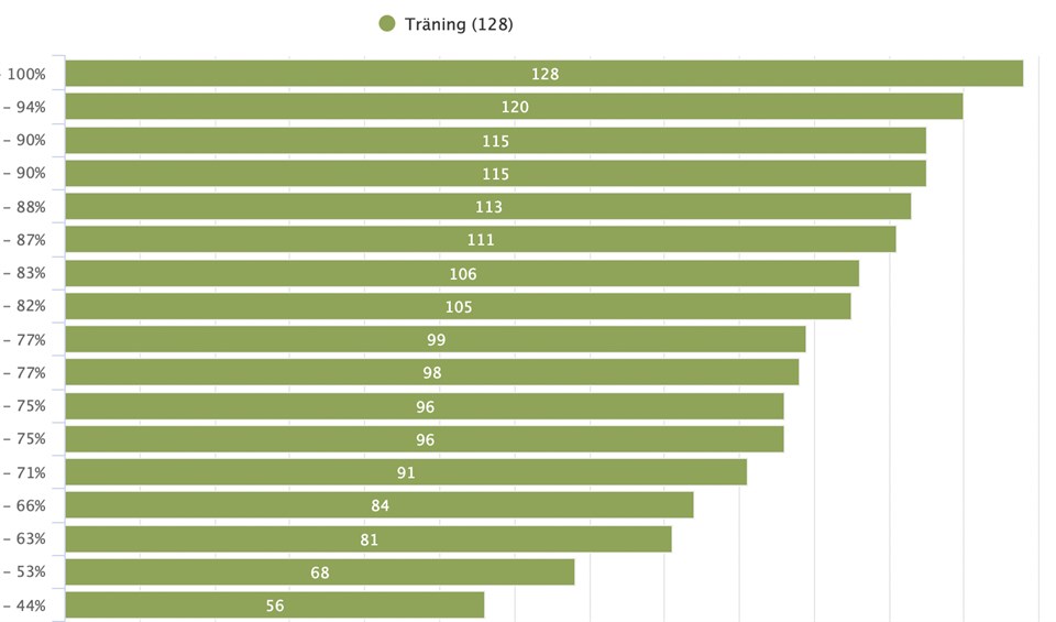 Hej alla, Här kommer statistik för hela året, totalt 128 träningar han vi med. Vi har bara två spelare som inte kom upp till 60% närvaro som vi har som mål. En av dessa var skadad i ca 3 månader så då blir det svårt. Statistiken gäller bara de barn som har varit med oss från första januari 2021. Grymma är ni 💪🔵 Forza Wormo P-2010 16 dec 2021 0kommentarer