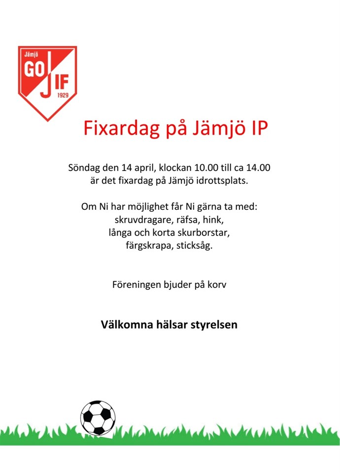 Nu är det dags för en fixardag på Jämjö IP, välkomna