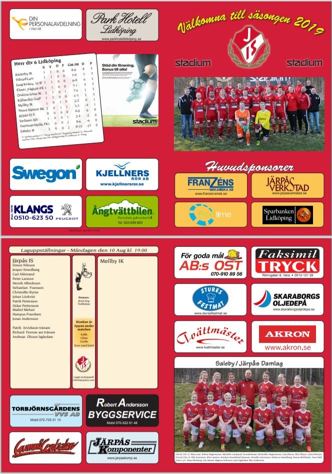 Då var det dags att spela seriematch i år. Vi tar oss an Mellby på hemmaplan. Under rådande omständigheter kommer inte vi ta in någon publik ikväll. Detta trots att SVFF har öppnat upp för detta. Det behövs en del förberedelse för detta. Vi hoppas ändå att ni stöttar oss på olika sätt. För de som vill så kan man stötta genom att betala fiktivt inträde. Detta görs genom att swischa till Järpås IS nr 123 68 074 73. Vi vill också tacka våra sponsorer. Herr 10 aug 2020 0kommentarer