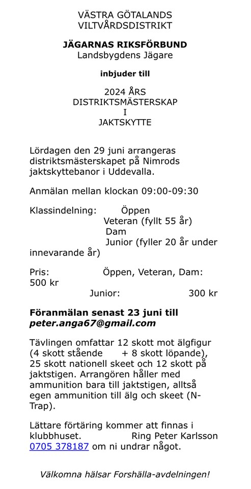 DM i Jaktskytte Välkomna // Forshälla avd JRF Västra Götalands Viltvård 12 jun 2024 0kommentarer