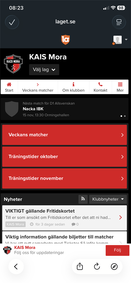 Klicka på bekräftelselänken i det mejl vi skickat dig för att börja ta emot uppdateringar från KAIS Mora.