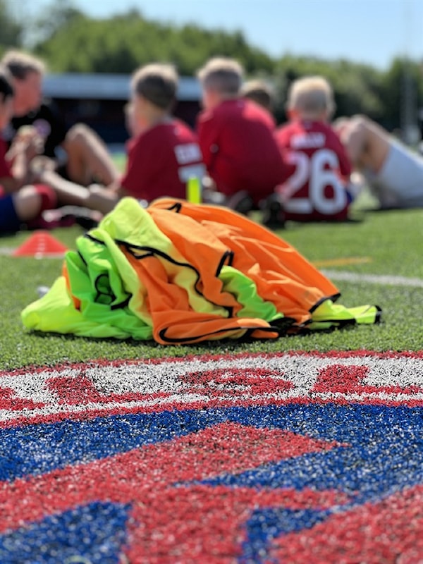 Barnen ska ha träningskläder, benskydd och helst fotbollsskor med dobbar på sig, men det är också okej med platta gympaskor så här i början. Glöm inte heller att ha med vattenflaska.