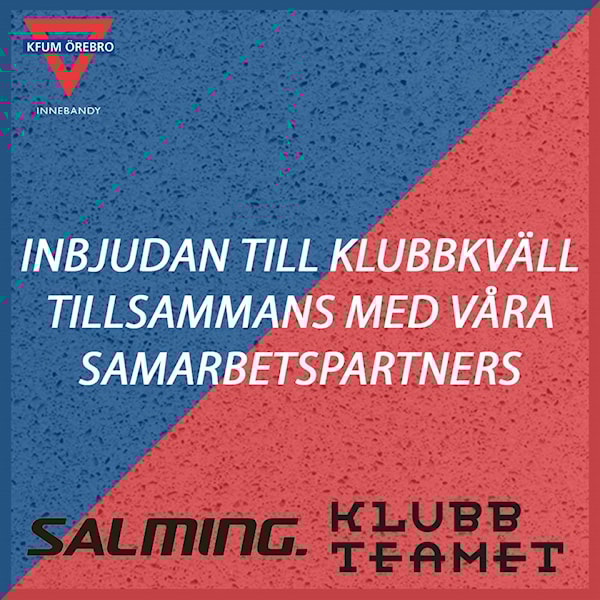 Ikväll, onsdagen den 22 september bjuder KFUM Örebro Innebandy tillsammans med sina samarbetspartners Klubbteamet och Salming in till Klubbkväll för samtliga medlemmar. Klubbteamet kommer vara på plats med klubbens profil vad gäller kläder, klubbor, väskor och andra produkter. Vill du köpa nya grejer inför säsongen och prova ut storlekar mm så är detta ett ypperligt tillfälle.