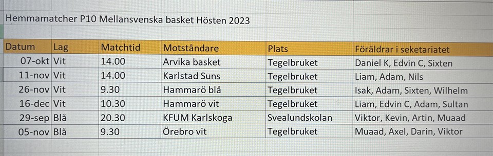 Eftersom Lag vit blivit dubbelbokade den 11/11 så har deras match mot Karlstad Sun blivit flyttad till januari. Lag Blå tar över matchtiden 11 november och möter Karlstad sun hemma på tegelbruket kl 16.00. 3-4 Föräldrar som kan sitta i sekretariatet behövs😊 P-10 5 nov 2023 2kommentarer