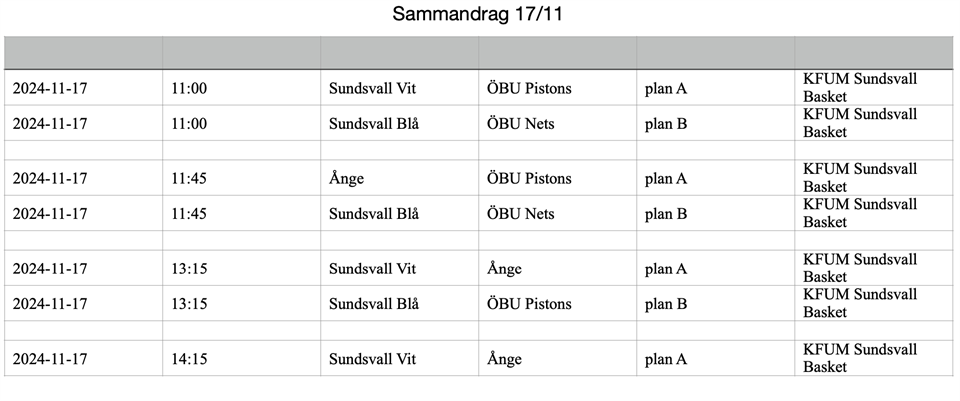 Hej! Snart är det dags för matcher och denna gång på hemmaplan! :) Som tidigare behöver vi hjälpas åt med arrangemanget och vi har följande förslag: Färdiga toast: - (bröd/smör/ost/skinka/ost/bröd)- Cornelis, Fred, Teodor Fikabröd/långpanna- Assar, David, Ture Kaffe/Te- Alfred, Egil, Loke Susanne tar med servetter, Festis, sopsäckar, tallrikar, mjölk Olika ansvarsområden under dagen som vi behöver fördela mellan föräldrar: Swish/prislista- Alfred Kioskarbete: 10:30-13:15- Assar, Alfred, Ture 13:15- 16:00- Theodor, Cornelis Praktiskt arbete under dagen/matchvärd: 10:30- 13:15- David, Fred 13:15-16:00 - Egil, Loke Blir det fler som anmäler sig till matcherna kan uppgifterna komma att ändras. Hoppas uppgifterna fungerar för alla. Annars önskar vi att ni försöker lösa det genom att skriva i kommentarsfältet nedan eller ta kontakt med någon av de andra föräldrarna i första hand. Bifogar också spelschema!
