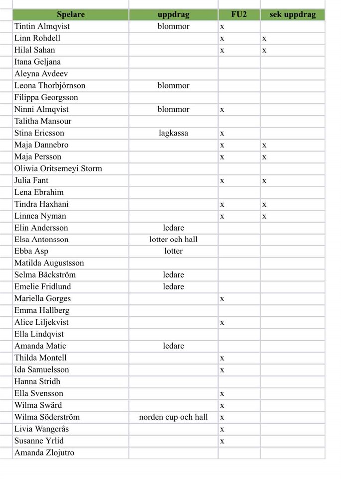 God dag Här kommer namnen för duon som ansvarar för sekretariatet på torsdag i Angered. Hilal S Julia F Bestäm sinsemellan vem som tar klockan och vem som sköter Profixio samt vem som hämtar datorväskan på kansliet i Lillekärrshallen. Bekräfta med tumme upp i kommentarsfältet. F16 8 okt 2024 2kommentarer