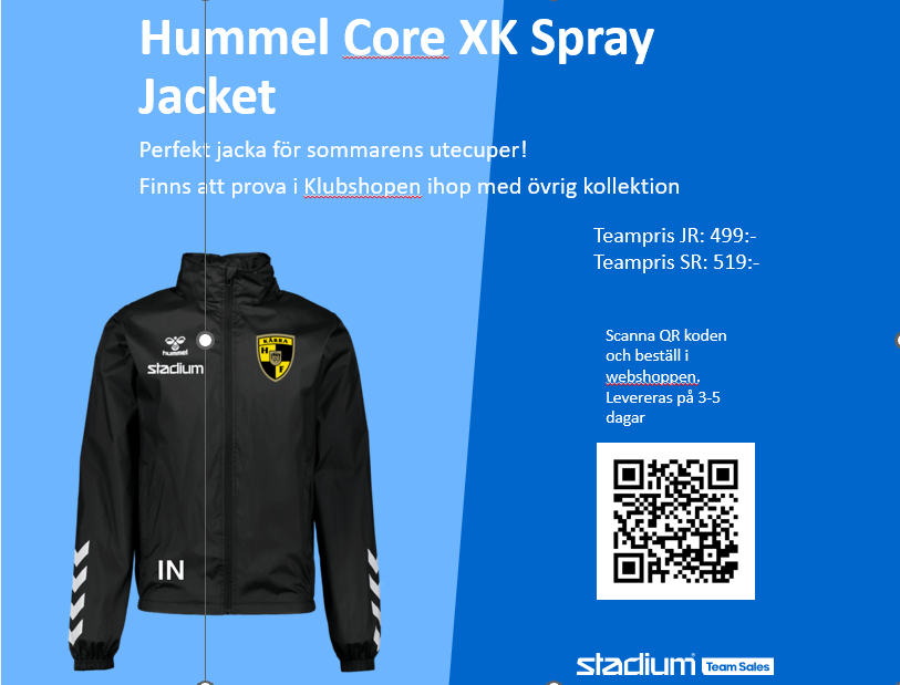 Hej Klubbshopen har öppet provningen av kläder fram till 12 Juni.Öppetider onsdagar 17-18:45. Ni har väl sett våran nya vind och regnjacka som finns att prova i lillekärshallen samt köpa i klubbshopen på stadium. Vi vill även slå ett slag för Hoodies som just nu finns till nedsatt pris. Väl möt Helena och Birgitta