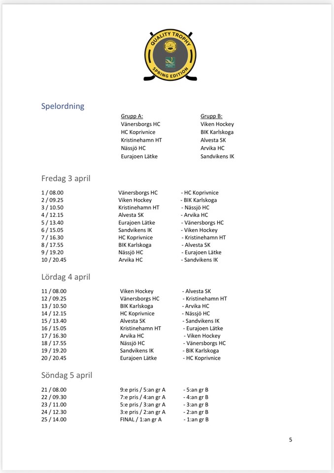 | 2. | (5) | Hammarö HC Team 17 (U-9) |