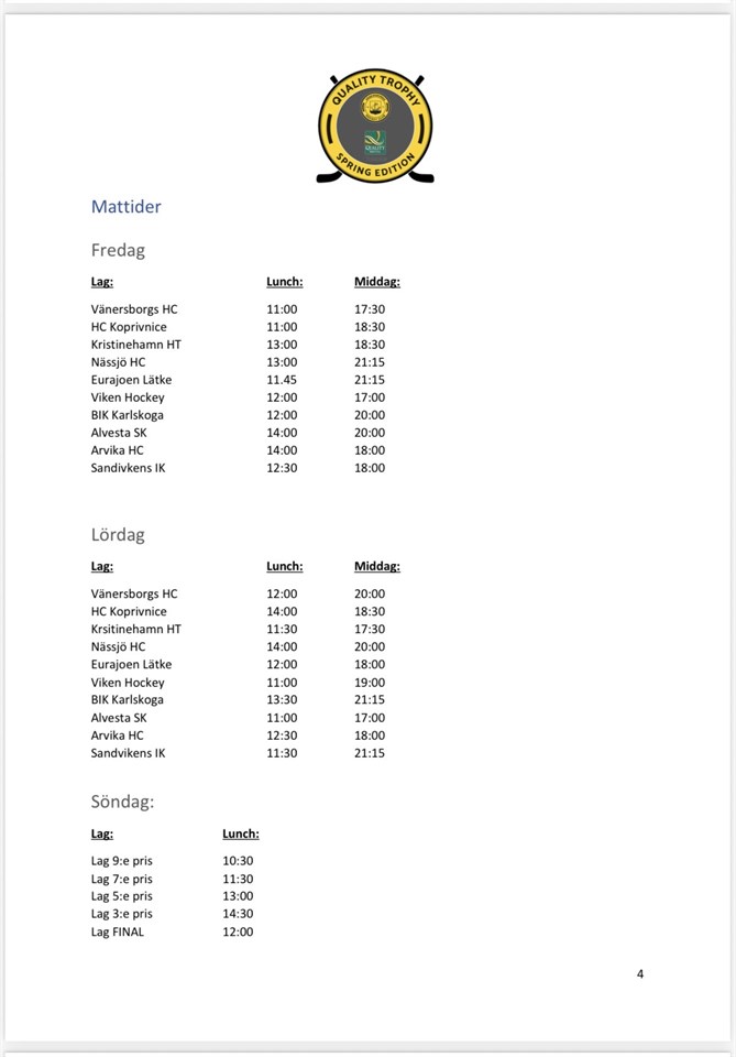 | 1. | (4) | Hammarö HC Team 13 (U-13) |