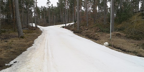 Snön börjar vid skogen, så gå på asfalten längs klubbhuset så ses vi på skidor för säsongens sista gemensamma Skidkulsuppvärmning!