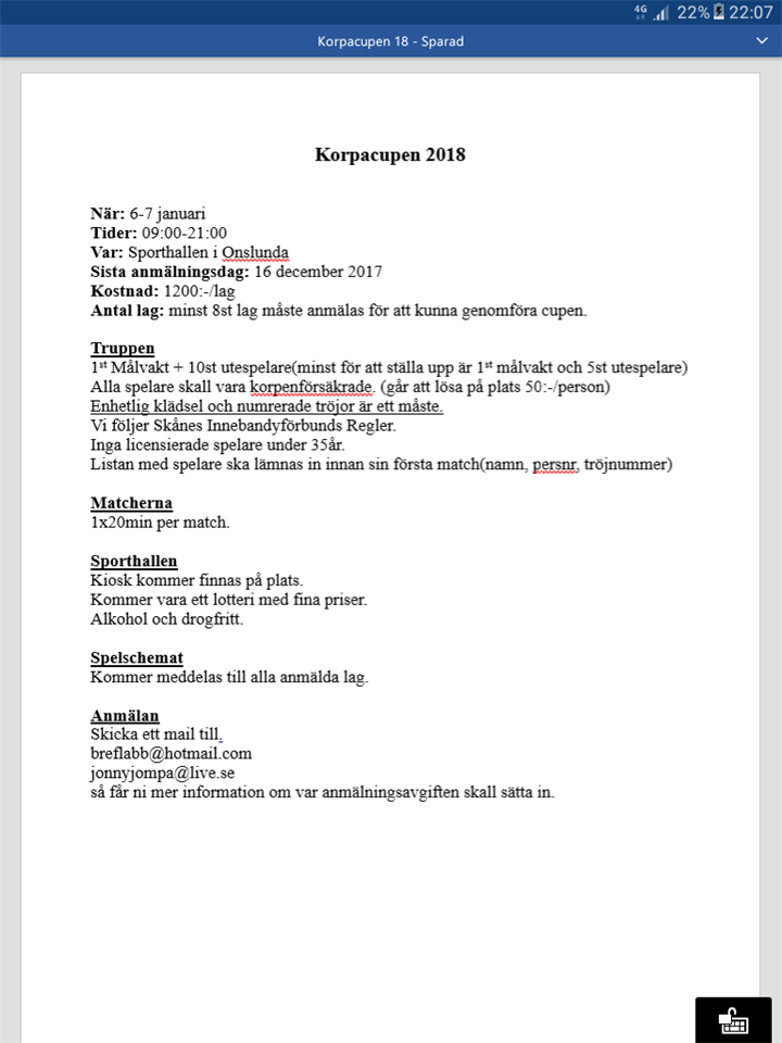 Sista anmälning är den 16 december. Cupen kommer spelas lördagen den 6 januari mellan kl 09.00-21.00 i Onslunda sporthall. För mer info skicka till mig på breflabb@hotmail.com eller ring 0739321061 Motionsförening 1 dec 2017 0kommentarer