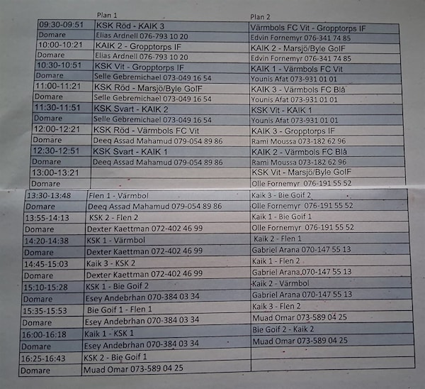 Se till att vara på plats 30 minuter innan eran första match börjar. Stanna kvar till nästa domare kommer och löser av er efter att ni dömt era matcher.