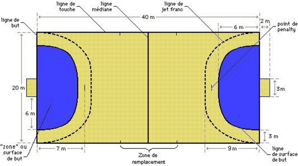 Ett handbollslag består av 6 stycken utespelare och en målvakt på planen. Normalt sätt så spelar man med 3 stycken 9 metersspelare. Dessa 9 metersspelare är väldigt centrala i spelet och har mest avslut och får mest passningar på en match. De övriga positionerna är spelare på 6 meter, alltså sex meter från målet. Man har oftast en linjespelare och två kanter, dessa kallas för sexmetersspelare.