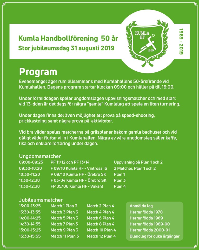 Jubileumsprogram Kumla HF 30 jul 2019 0kommentarer