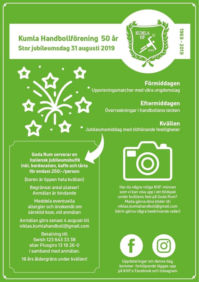 Kumla Handbollsförening 50 år Kumla HF 13 maj 2019 0kommentarer