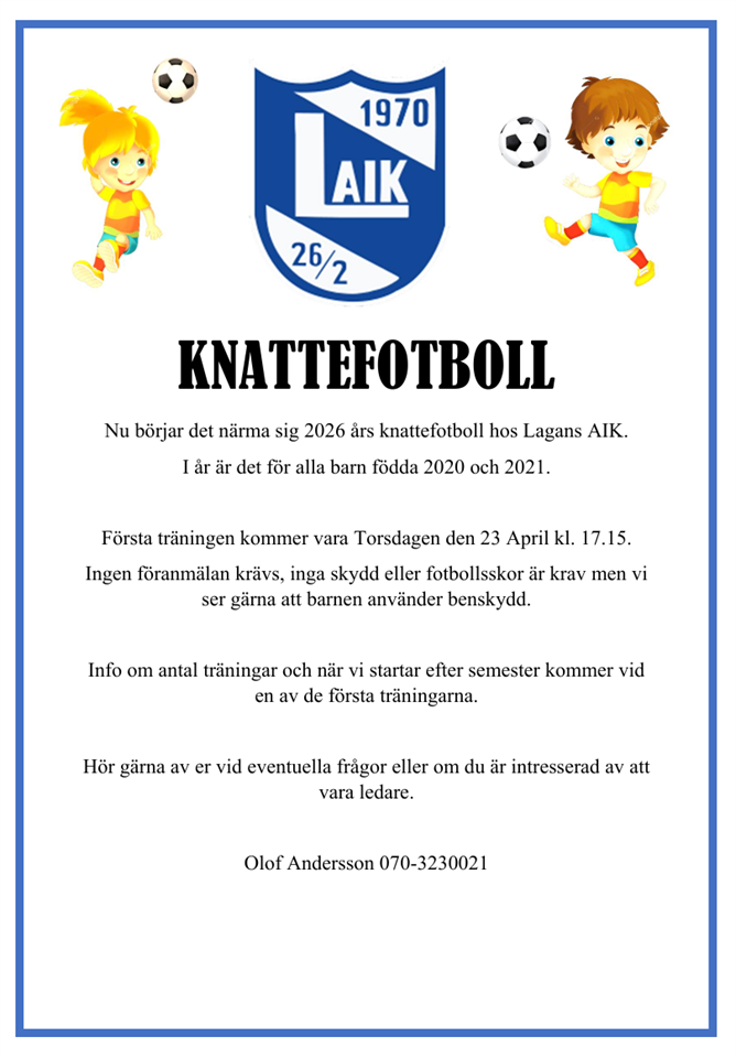 Fyll i din e-postadress för gratis uppdateringar om Lagans AIK Knattelag