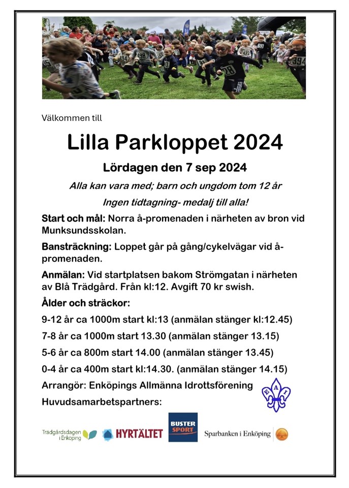 Nu är det snart dags! Ni som är upp till 12 år springer Lilla Parkloppet. Ni som är 13 år och uppåt vill vi gärna är funktionärer. Ni som är funktionärer: samling kl 12 vid startplatsen. Lilla löpargruppen 27 aug 2024 0kommentarer