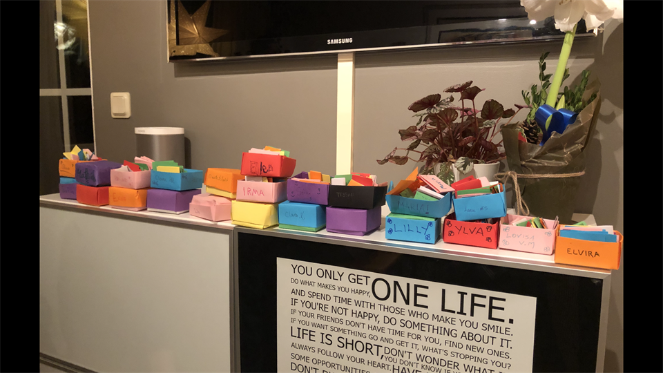 I kväll var det dags för F-07' s årliga tradition, för 5:te året i rad körde vi pizzahäng m uppvärmningsdans till Bengt, pizza i stora lass, pyssel o quiz. Årets pyssel blev stor succé, tjejerna fick i uppgift att göra en varsin papperslåda och sedan fylla varandras lådor m "pepplappar", Det var underbart att se deras entusiasm o engagemang inför uppgiften. Stort tack till familjen Allerby för att ni som vanligt så generöst öppnar upp ert hem, Mats för quizen, alla föräldrar för att ni är så stöttande och positiva och framförallt TACK till alla tjejerna för att ni är just dom ni är, ni är alla fantastiska. Vilket team vi är!! Vi saknade er som inte var på plats: Ylva, Lilly, Lovisa vem, Vera, Teo och Björn.