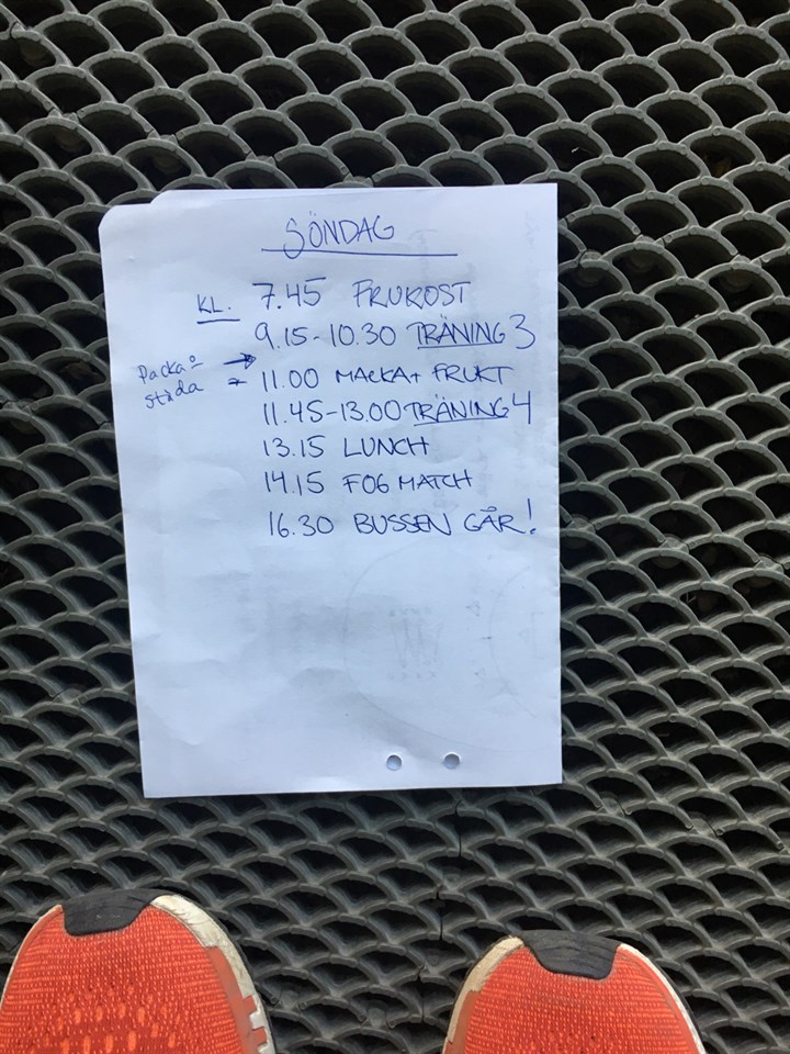 Tro det eller ej - igår sov alla kl 22.30 och sov gott till 6.30 - exemplariskt!! Direkt efter frukost drog vi igång ett 2 timmars fyspass - springa uppför trappa med vikt, springa på 10 m lång luftmadrass, bra för bål o balans och allmänt full fart o fläkt. Därefter åkte vi raka vägen till träningsanläggningen för handbollsträning. Sedan var det gott med lunch kan jag lova. Vi har även hunnit med att heja på herrlaget som spelade match o ytterligare ett träningspass. Tjejerna var heeelt slut men höll ändå humöret uppe!! Nu leks det kurragömma. Tror inte det kommer bli några problem att somna ikväll! Vi har det toppenbra. Ett stort tack till Elisabet som gjorde badutflykten möjlig - bästa svarttaxin i Nyköping som körde i skytteltrafik både till o från. Tack 🌻. F2007 (F14) 9 sep 2017 2kommentarer