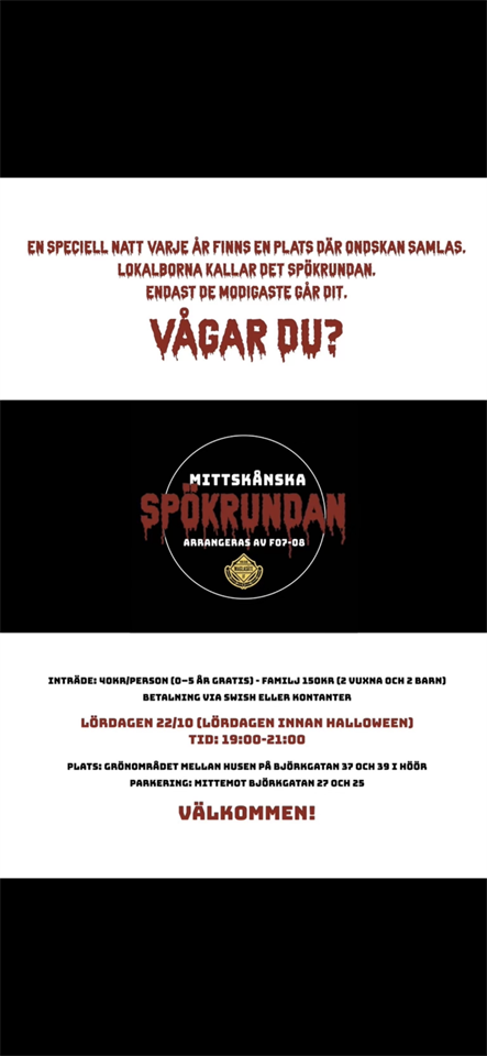 F07/08 arrangerar spökrunda lördagen den 22/10 Se mer info på bilden. Maglasäte IF 16 okt 2022 0kommentarer