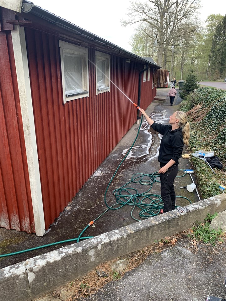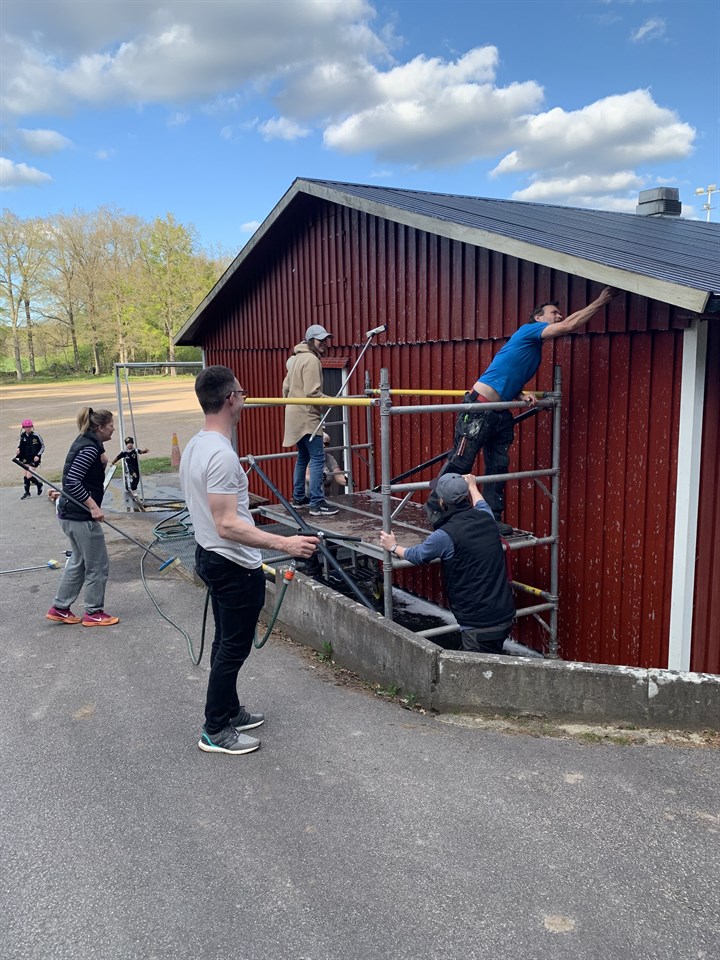 Eller ja.. snart så. 3 duktiga kvinnor från F09/10/11 har idag startat med tvättning av fasaden på klubbstugan. Fantastiskt bra jobbat. Sen ska den målas 2 gånger också. Ni kanske har sett att det fattas lite bräder på huset? De mådde inte så bra så Maritha fixade så det revs ner och nu står hon och oljar och fixar till nya som ska upp sen. Tack till er alla som ställer upp och fixar för föreningen. Utan er klarar vi oss inte. / Maria Maglasäte IF 3 maj 2022 1kommentar