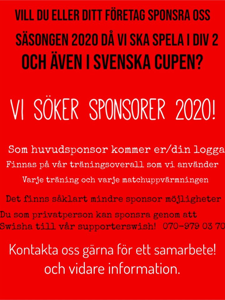 Damlaget söker nu nya sponsorer inför säsongen 2020. Det finns flera olika sätt att sponsra oss, kontakta någon av ledarna för vidare information! Dam 5 dec 2019 0kommentarer