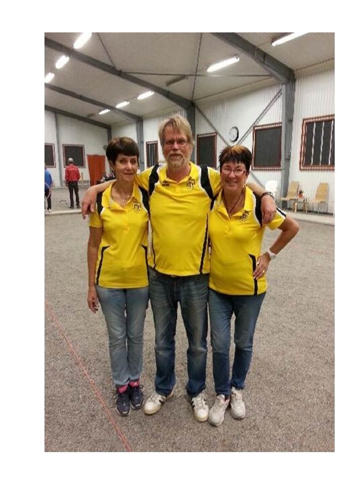 Malmköpings IF Boule var i helgen och spelade Septemberkringlan i Södertälje! Septemberkringlan spelades i Södertälje den 14 september. Vi hade 4 Malmköpingspelare på plats och samtliga gick till semifinal. Vårt lag, Gunilla, Kerstin och Kjell, gick till final och tog andraplatsen. Leif spelade för Boo Bouleklubb och de nådde semifinal. Detta är nog den största framgången hittills för Malmköpings Boule då det var mycket meriterande lag som deltog. Efter några mycket bra placeringar så börjar motståndarna få respekt för ”gultröjorna”. Vi har inte bara snyggast klubbtröjor längre utan vi levererar också bra spel i olika sammanhang. Leif kom inte med på bilden då han höll i kameran. Boule 17 sep 2013 0kommentarer
