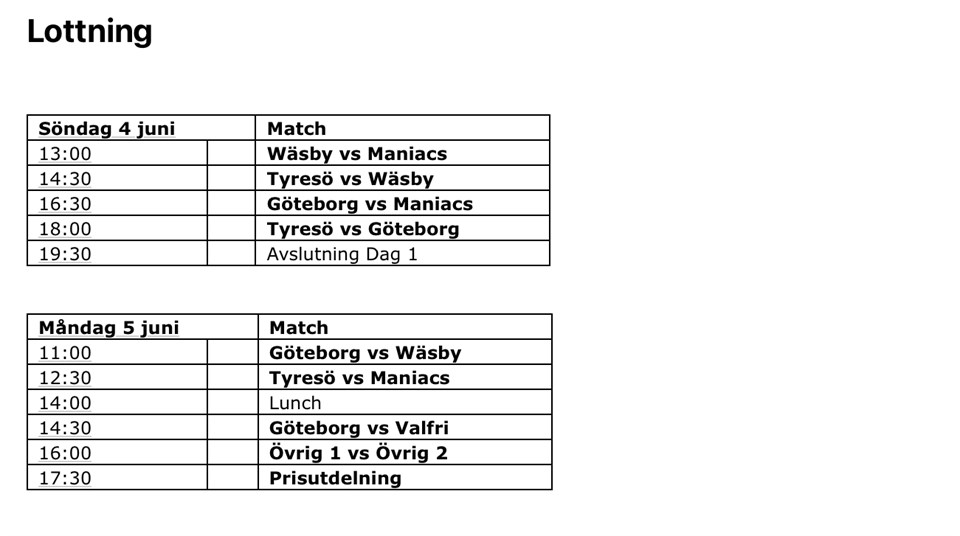 Hej, Nu är lottningen klar inför Fairplay cup, Första matchen är kl 13:00 på Söndag. Kl 11:00 på Måndag. FRIVILLIGA Det är också läge att ni som ska hjälpa till bara på Söndag kommer 1 timme innan. Vi har en del att göra för att förbereda allt och då slipper vi tränare bli stressade. Bland annat ska det hämtas en hel del saker i förrådet. Lägg gärna in ert telefonnummer i laget.se. Vi lägger då in er i gruppen Maniacs Grill så att vi kan synka vad som behöver göras. Jag och Carl-Johan kommer vara turneringsansvariga så fråga oss om det är något. Sen måste också folk stanna kvar och plocka undan. På måndagen börjar vi kl 11 och de som ska plocka fram bör vara där 45 min innan. U11 (2015-2017) 29 maj 2023 0kommentarer