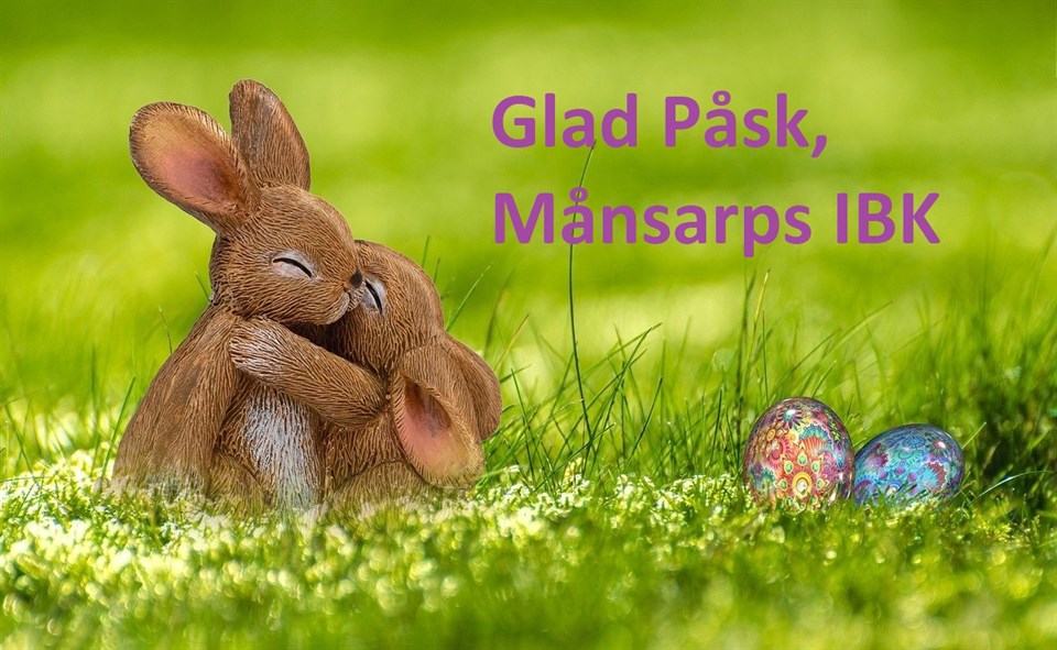 Vi önskar er alla en Glad Påsk. Kommande aktiviteter: - 21a April kl 18:00, Ungdomsavslutning i Folkets Hus Norrahammar. - 24e April kl 9:30, Vägstäd samling Hotellplan Taberg. - 19e Maj kl 18:00, Årsmöte Folkets Hus Norrahammar. //Månsarps IBK