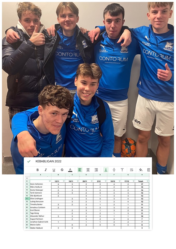 Efter spännande matcher i sista omgången av kebabligan så blev det 6 st som vinner en kebab. Lite information framåt. - Vi tar ett uppehåll med fotbollen fram till v. 2, när skolorna startar. - Några ska spela Örebrocupen i Futsal 29-30 december. - Vi ska försöka hitta en inomhustid tisdag eller onsdag innan Örebrocupen. Ha en riktigt God Jul och Gott Nytt År🎄💥 Forza MIK P2006/07 17 dec 2022 0kommentarer