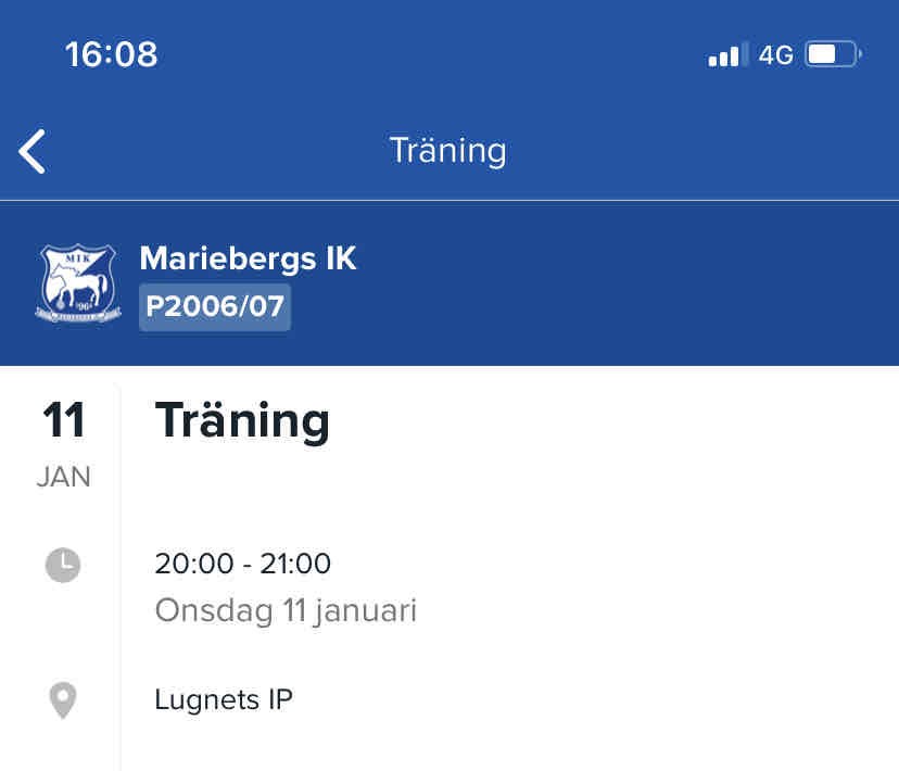 Pga att Lugnet är ospelbar så har vi fixat tid på Pettersbergs konstgräs samma dag och tid. Onsdag 11 januari mellan 20:00-21:00. Kalendern är uppdaterad. Forza MIK P2006/07 10 jan 2023 1kommentar