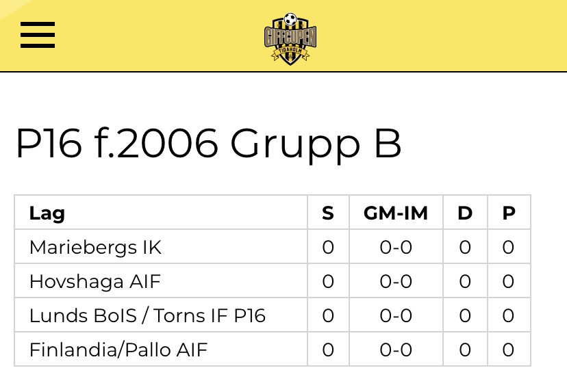 Nu är spelschemat klart för GIFF-cupen. Grupp/spelschema Vi kommer att spela samtliga gruppspelsmatcher på samma plan. Den ligger ca. 15 minuters bilfärd söderut från Tidaholm. Skedevallen Forza MIK P2006/07 8 mar 2022 0kommentarer