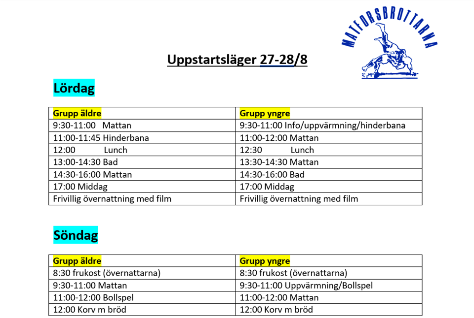 • Info & schema uppstartsläger