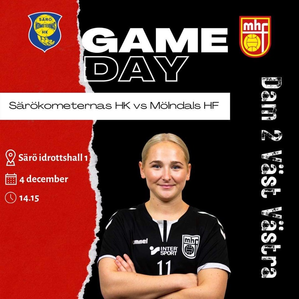 Mölndal tog en tung seger på bortaplan mot Särökometerna i toppmötet i division 2 Väst väst dam i handboll på söndagen. Matchen slutade 20-21 (10-11). - Det var en härlig vinst och känns rättvist också. Första halvlek är jämn, vi leder med 1-2 bollar som mest och har 10-11 med oss. Det är först i mitten utav andra vi får tre måls ledning och med bara tio minuter kvar har vi fyra bollars ledning. Känns lite avgjort men Säro stressar oss och lyckas kvittera med femton sekunder kvar. Vi tar time-out och bestämmer oss för att gå för vinst. Vi plockar ut målvakten och bestämmer vilket utgångsläge vi vill ha. Med två sekunder kvar sätter Caroline Lundberg vinnande målet. Härligt att vi fick med oss två poäng och riktigt bra kämpat utav tjejerna idag, kommenterade Mölndals tränare Halldor Halldorsson. Mölndals mål gjordes av Johanna Milos 8, Anna Kaufmann 4, Emilia Andersson 3, Amanda Byrne 2, Sofia Byrne 2 och Caroline Lundberg 2. Särökometerna har fyra vinster och en förlust på de senaste fem matcherna, medan Mölndal har två vinster och tre förluster. I sista matchen möter Mölndal Fjärås borta på lördag 10 december 16.00.
