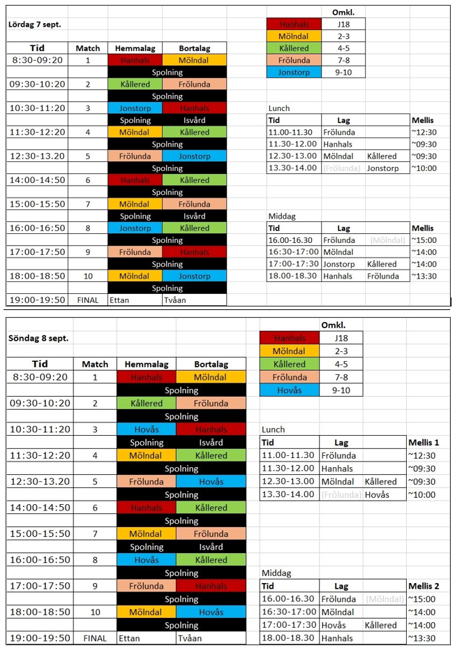 Nu har vi rensat bort intresseanmälningar för matchen fre 6 sep och Hanhals Trophy 7-8 sep och ersatt dessa med skarpa kallelser. Vänligen svara på kallelserna så fort ni kan. Det går en del sjukdomar så om ni märker att ni inte kommer att kunna spela så tag kontakt med någon av oss ledare direkt, så att vi får en chans att pussla om. Ni kan alltid ringa eller smsa Jocke på 070-3711093. Match A1 fre 6 sep Ni ser i kalendern matchstart och samling. Till denna match behöver vi hjälp att bemanna café och sekretariat. Kommentera på denna nyhet eller hör av er till Jocke på numret ovan om ni kan hjälpa till. Hanhals Trophy Tiderna för båda dagarna ligger publicerade på Cuponline där även all övrig information om cupen ligger. Lagen kommer att uppdateras där under torsdag så att de matchar kallelserna. Klicka på länken till Cuponline här för cupen och matchtiderna ligger under rubriken "Games" som ni också finner här. Lunch, middag och mellanmål ingår. Om ni inte betalat för cupen ännu så ber vi er att göra det skyndsamt, se tidigare utskick/mail om det. Vi räknar med rejält stöd från läktarna! Nu kör vi! Är det några frågor så är det bara att höra av sig. U16 4 sep 2024 0kommentarer