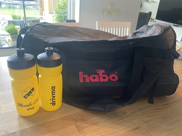 Vi vill framföra ett extra tack till Andreas Sjölin från Drivma AB och Mattias Löwenborg från Habo Gruppen AB som har skänkt vattenflaskor till alla grabbar och stora sportbagar till varje lag för att bära med kläder/material.